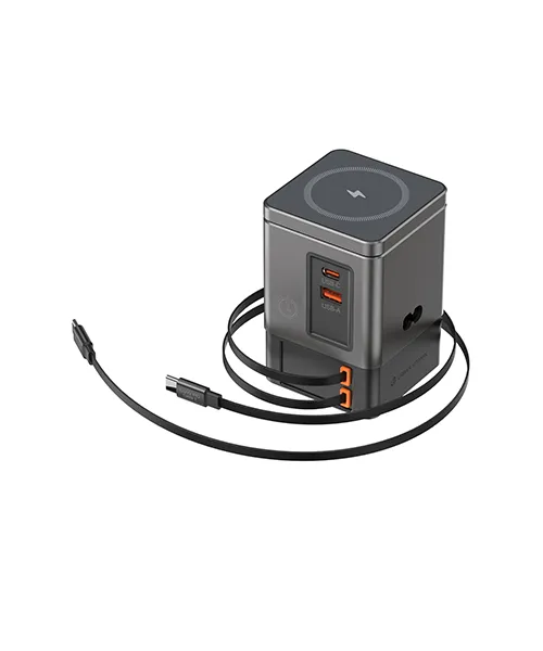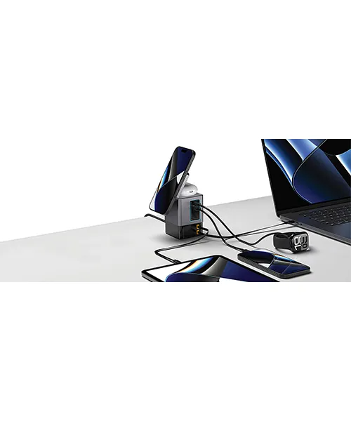 Зарядно устройство Urban Vitamin Sacramento 105W GaN Ви помага да организирате работното пространство по чист и функционален начин. По малко кабели означават повече комфорт и спокойствие по време на работа.