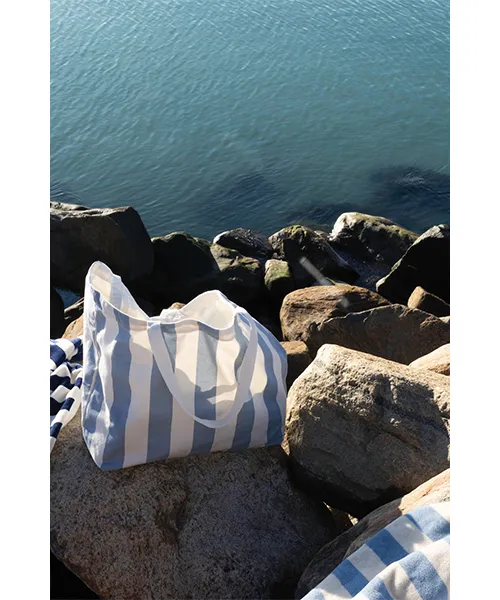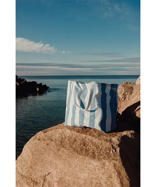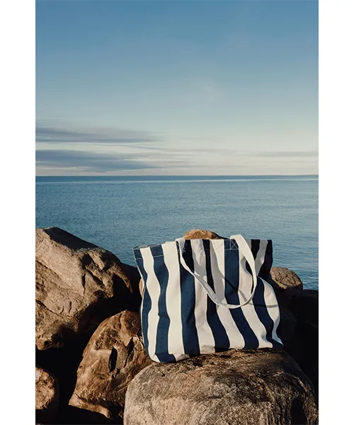 Плажна чанта VINGA Lagoa съчетава изключителен обем, висока устойчивост и ненатрапчив стил. Моделът предлага просторен интериор, в който можете да подредите всичките си вещи на едно място. Това включва хавлии, козметика и лични принадлежности. По този начин отпада нуждата от допълнителни чанти или торби. Дизайнът ѝ е вдъхновен от класическия десен на райета. Той е едновременно изчистен, елегантен и универсален. Визията ѝ се вписва хармонично в спокойната атмосфера на плажа. Също така се адаптира към динамиката на градската среда. Платното с плътност 390 г/м² осигурява впечатляваща издръжливост. Чантата запазва форма и цялост дори при носене на тежки вещи или интензивно ползване.